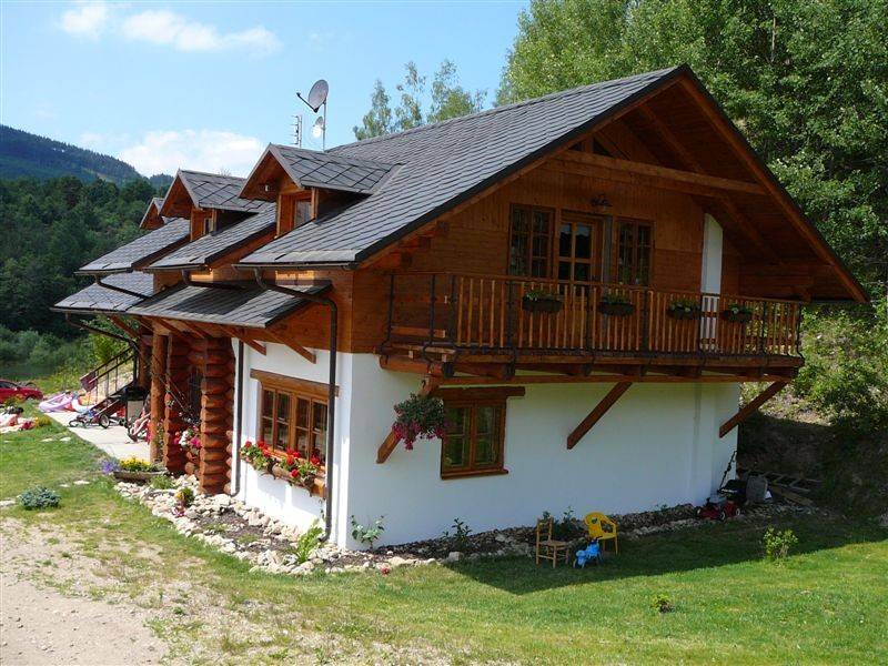 Kachlová kamna, krb vnitřní, krb venkovní, elektrická kamna, atd. Velká vybavená kuchyně (ele. sporák, lednička, mikrovlnná trouba, myčka) s kachlovými kamny, jídelním koutem a LCD, obývací pokoj s kameným krbem s krbovou vložkou, 2 lůžky, 3 ložnice (2/2,1/3), koupelna s vanou, sprchou a WC, samostatné WC, topení kombinované (krb, kachlová kamna, podlahové), balkon. Volné prostranství, oplocená zastřešená venkovní terasa s krbem, zastřešené venkovní posezení, ohniště s posezením, zahradní nábytek, dětský koutek.
